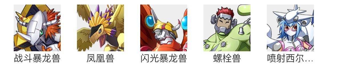 第一套:喷射西尔芙兽-凤凰兽-闪光暴龙兽-螺栓兽-战斗暴龙兽