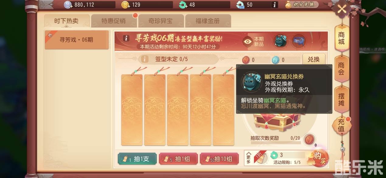 少侠可在寻芳戏中兑换的外观为【幽冥玄喵】(坐骑)、【雀影重】(面部挂件)、【深蓝回忆】(锦衣)、【萌喵背包】(背部挂件)、【一羽翩跹】(坐骑)、【白鸦】(面部挂件)、【仙鲤游】(锦衣)、【半掩云烟】(面部挂件)、【七彩糖果】(冒泡框)。
