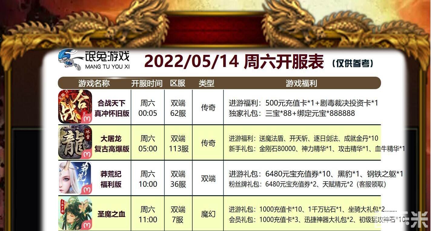 | 莽荒纪-福利版 | 双端36区( 苹果- 安卓) | 2022-05-14 10:00:00 |