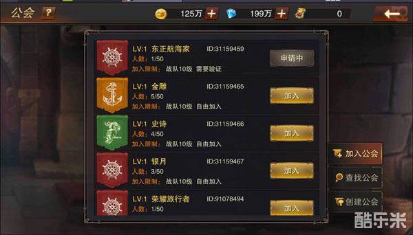 1) 加入自己喜欢的公会或者查找朋友的公会加入
