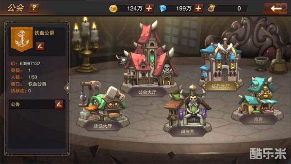 新创建的公会,拥有公会大厅,建设大厅和公会商店3个初始建筑;而公会内更多的建筑群,需要公会内成员捐献解锁,相应解锁新的公会玩法: