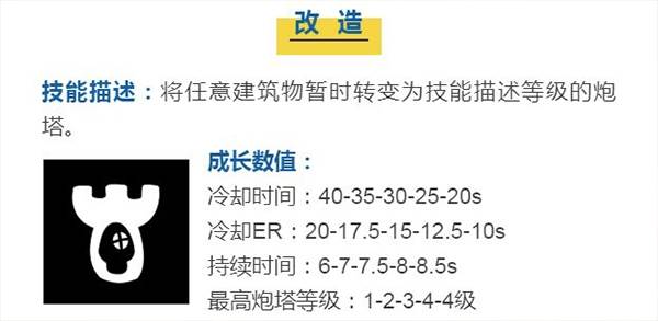 需要注意的是,在改造的过程中村庄将不在产生士兵、锻造铺也不会再增加防御与攻击力,该技能适用于满级的前线村庄或锻造铺的暂时防御,使其易守难攻。