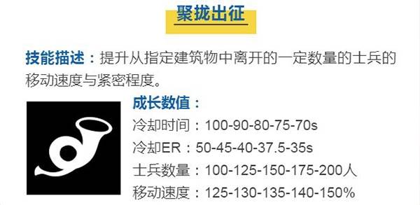 该技能相对于“回家”有一个好处,就是仅将状态导流(重复),但是对手的士兵仍然会正常按原路径进攻,此时指挥官可以提前安排士兵到该建筑物,为自己增加防御力量并赢取大量士气。