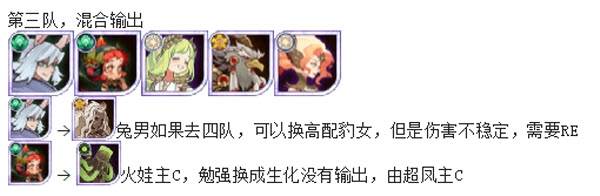 兔男如果去四队,可以换高配豹女,但是伤害不稳定,需要RE。