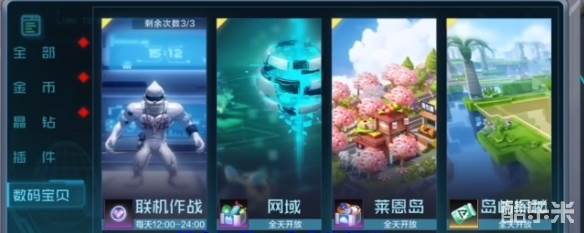 2.可以看到插件选项下面有一个数码宝贝选项,岛屿探秘就在里面。