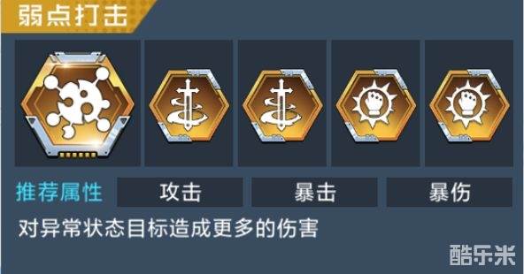 核心插件选择弱点插件(尼普顿的禁疗、维京兽的控制均属于负面状态,可以与狄安娜兽搭配),普通插件选择狂暴插件和强击插件,尽可能提升狄安娜伤害爆发。由于狄安娜兽自身拥有极高的暴伤加成,因此天赋及插件属性推荐优先提升暴击率属性。