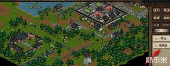2、杭州场景的南屏山北侧有个草药采集点,具体坐标为30.26这个坐标点位置,接着前往该位置。