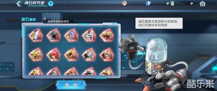 队长们可以使用任意自己所拥有的究极体魂石,来置换其他的魂石,可置换的魂石会根据游戏内【召唤】中的魂石,同步出现在分子兽的魂石研究室中。每次魂石置换成功后将有7天的冷却时间,时间到后可再次进行魂石置换。