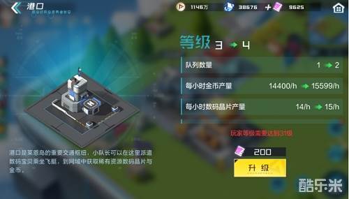 模拟经营类玩法“莱恩岛”内,建造港口并升级,派遣数码宝贝乘坐飞艇,挂机就能得到丰厚的金币产出。