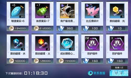 因为金币数量有限,尽量用在比较重要的位置。例如插件升级,这是必不可少的提战方式(拥有最高优先级),只有提升战力才能挑战更高强度的战术演练得到更高品质的插件(插件还能卖钱),而成长期核心、数码宝贝碎片兑换优先级较低(除非是自己想要的数码兽);而潜能果实、数码磁碟也以晶钻出售,有条件的小伙伴可用晶钻购买(果实可以直接买到,但每天买满果实也是相当大的一笔费用)。