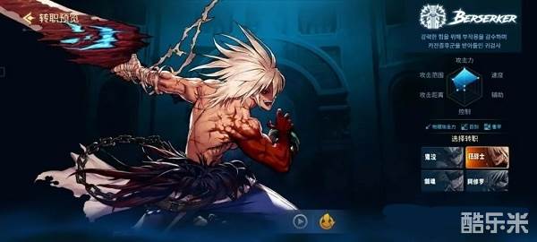 狂战士这个职业,在输出伤害、机动性方面都很好,技能方面带有伤害以及aoe的,移动速度又快,其核心技能暴走可以带来大幅度的伤害以及双速加成。