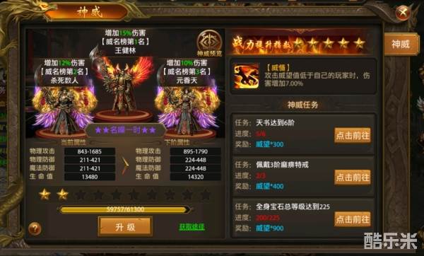 4. 完成神威任务可获取威望值,威望满足后可提升威名