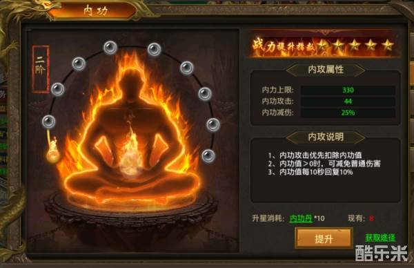 2. 玩家内功等级越高,减伤比例和内力值越高,内力值恢复也越快