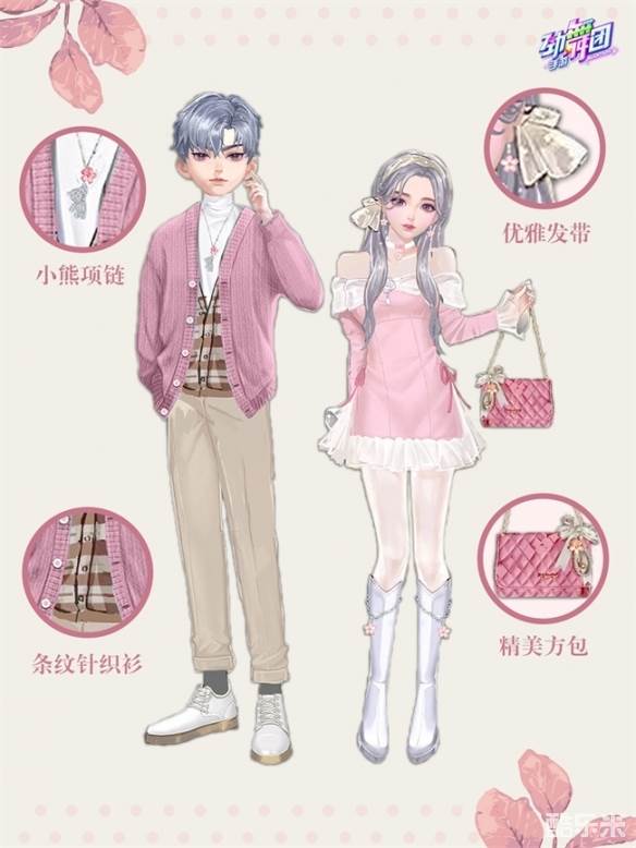 春日盛景当有桃花盛开,染上一抹娇嫩的粉色,绘出春天的别样风景。本期有粉嫩优雅的桃花小哥/桃花小妹,带你感受春日中的那一抹粉色美景。服饰桃花小妹为一袭粉色露肩短裙,胸前缀有白色玫瑰与宝石,增添了几分高雅气质,再配上一双白色长筒靴,服饰整体甜美优雅,气质高贵,十分吸睛!