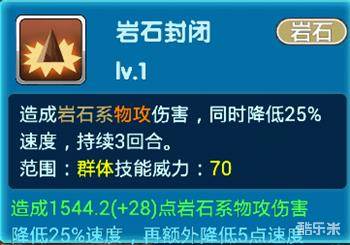 雷吉洛克【岩石封闭】造成岩石系物攻伤害,同时降低25%速度,持续3回合。【铁壁】能够提升群体100%的物理防御,35%特殊防御力,降低被暴击的几率,持续四个回合,冷却3回合。这两个技能范围均为群体技,如果能善用这两个技能,能够给对手造成不小的麻烦!