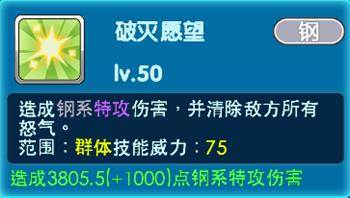 破灭愿望:造成钢系特攻伤害,并清除敌方所有怒气。