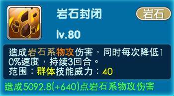 当亲密度达到十级的时候-岩石封闭:造成岩石系物攻伤害,同时每次降低10%速度,持续3回合。属于群体技能,技能威力40