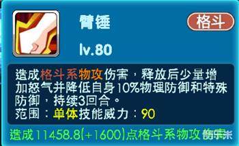当亲密度达到二十级的时候-臂锤:造成格斗系物攻伤害,释放后少量增加怒气并降低自身10%物理防御和特殊防御,持续3回合。属于单技能,技能威力90