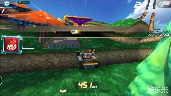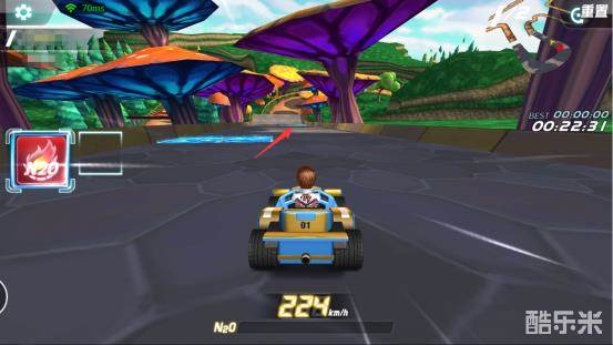 在最后有一条近路,看似比较绕远,实际上最后有一个蓝色加速带可以快速冲过终点!