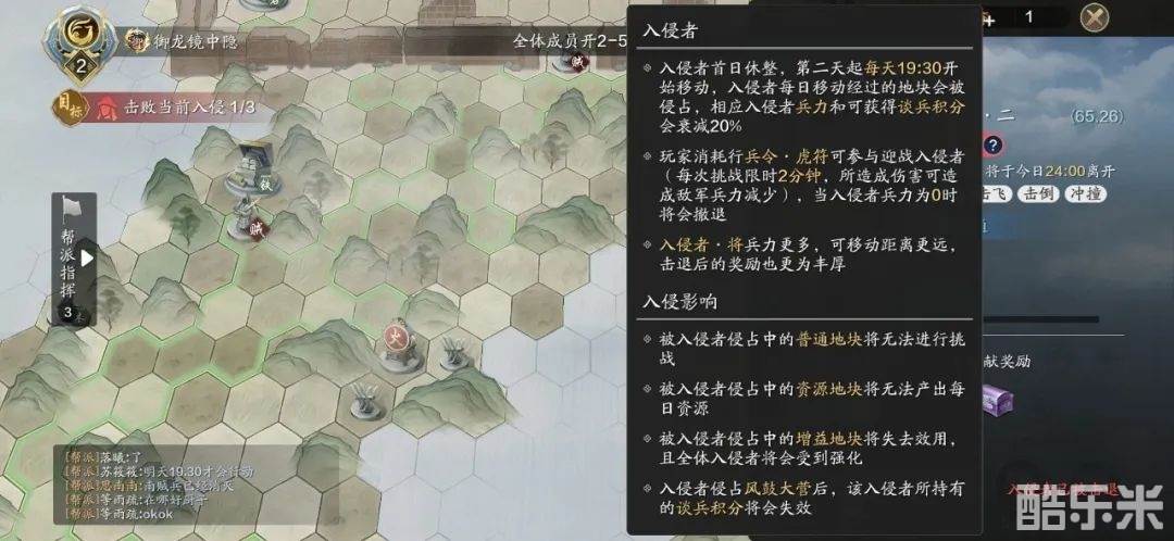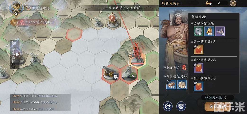 1)本周入侵BOSS为郝厨子,一共3个进攻方向,只要视野接壤就可以去挑战。2)击败每个入侵BOSS都能获得纸上谈兵资源,积分等。并且全帮玩家都会获得海河令和兵法残页奖励,输出前三的玩家还有累计伤害红包(参考江山)。
