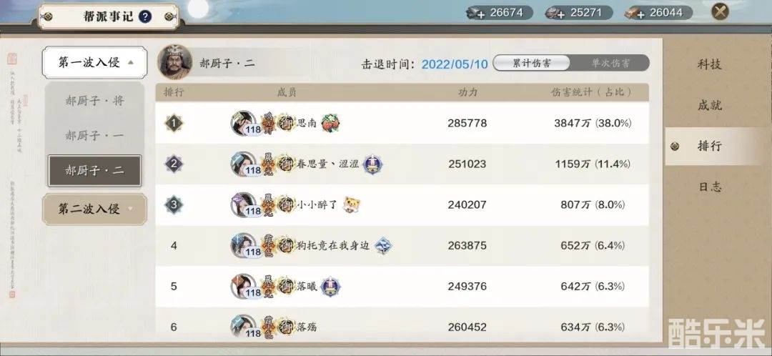 6)只要有完整一个团的帮会一般都能在当天击杀完所有BOSS,如果帮会人数较少可以在第二天重新刷新虎符继续迎敌。7)入侵记录和玩家伤害都会在帮派事记的排行中显示,另外每周的BOSS是不同的,下周将会迎来4个耶律兰的入侵。