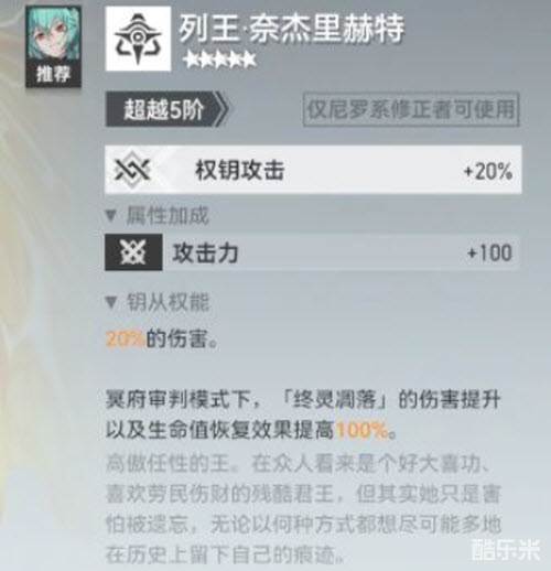 印记上限增加的特点与钥从效果中三技能会消耗所有印记,额外消耗的印记可提升三技能伤害相辅相成;出场后自身与连携奥义的修正者额外获得奥义充能及冥府审判状态下的三技能增伤使得生魂可以快速打出第一套大招及连击组合,有效的提升了生魂的强度、爆发能力;三技能命中敌人的回复效果更是能够有效提升生魂的生存能力及大招的持续时长,提升大招的容错率;而一技能冷却中强行使用一次一技能将不再消耗印记,但由于也不能回复印记,所以实际上更像是锦上添花的一点小帮助。(三技能消耗的印记是阶段性的,会先在蓄力聚怪时消耗两层印记再消耗其他印记,所以冥府审判状态下的三技能可以瞬间衔接二技能)