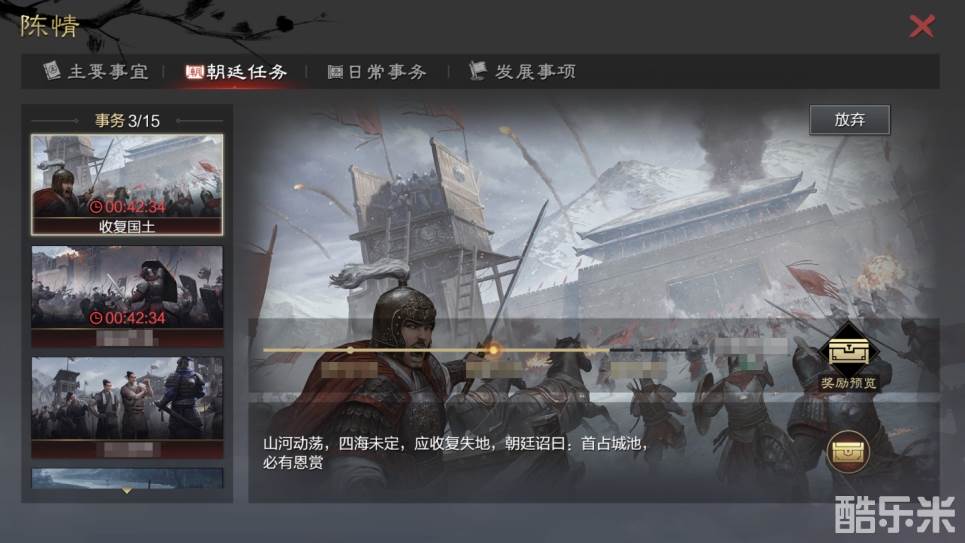 东汉势力底蕴深厚,人数众多,有意匡扶汉室者,可以完成朝廷定期发布的旨令,平定叛乱,收复汉土,并获取大量资源。
