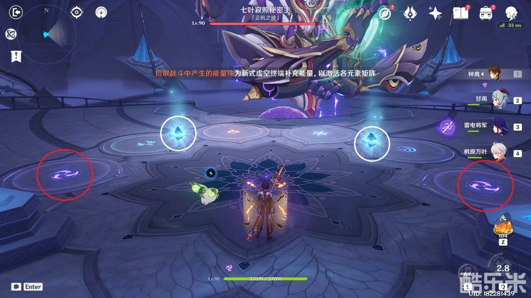 (3)我们分别拾取两块,将左右两边的雷元素圆盘各使用一次,即可使正机之神瘫痪。