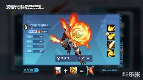 1、消耗数码宝贝经验和同调因子,可将闪光暴龙兽与阿波罗兽融合进化为超究极体数码宝贝闪光暴龙兽BM。