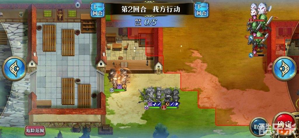 右边雷丁和利亚纳站位,之后绕房子往上走,反掉骑兵后风筝步兵