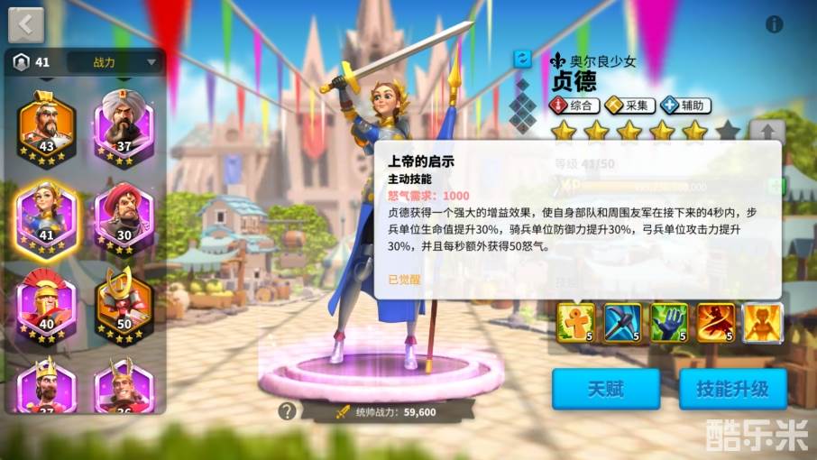 由于圣坛在未占领之前,属于中立单位,所有使用打野将领开集结的话,集结部队可以全程享受到将领天赋和将领技能中的对野蛮人的伤害加成。这里推荐使用布狄卡做主将,因为布狄卡同时还有技能的天赋路线,比较全面,其次推荐贝利萨留纯骑兵集结,但是不推荐使用洛哈,因为前期洛哈的雕像获取数量较少,技能等级势必会很低,用起来效果就不是很理想了。