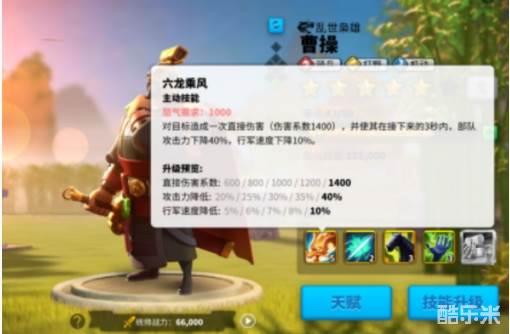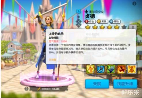 源义经获取门槛非常低,首充就可以获得,并且可以轻松将一技能升到五级,曹操可以从宝箱获得,两个将领的一技能伤害在前期非常可观,加上被动对骑兵攻击的加成和野蛮人的增伤,伤害爆炸。此外曹操一技能还能降低40%的对方攻击力,并且有几率回血,提高了生存能力,在21级城堡130w集结兵力T4,T3混合的情况下,基本上不需要围攻一直补充集结部队兵力就能轻松拿下。