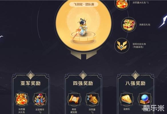 成功跻身团队争霸赛八强的战队,将获得包括淬灵露大礼包、法宝精华、高级藏宝图、金刚石、定魂珠等在内的丰厚奖励。而获得冠军的战队更将获取淬灵露大礼包、洗炼石礼包以及冠军对应头饰飞羽冠!