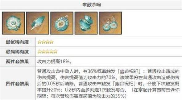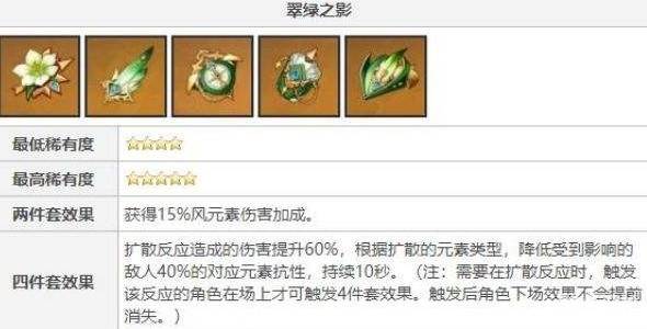 虽然为4星圣遗物套装,但教官套是唯一可以提供海量元素精通的套装,能够让队伍的元素反应伤害大幅提升,
