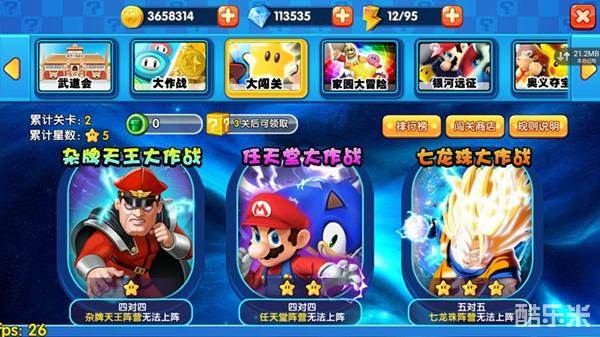 玩家会面对来自4大阵营的明星们接踵而来的挑战,挑战每个阵营的对手时不能使用相同阵营的明星,以下图为例,对阵杂牌天王阵营时玩家不可以使用杂牌天王的明星,只可以从小精灵、七龙珠和超级玛丽阵营里选择上阵的明星,所以玩家搭配阵容的时候可要仔细点啦~