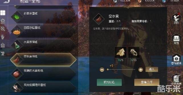2、解锁的学识高级一点的玩家可以造出熔炉,然后在熔炉内打造出空水瓶。空水瓶用法和水囊没什么区别,只不过空水瓶可以装250的水珠,比方说玩家造出10个空水瓶,到水源边上装满水分解后一次性就能获得250个水珠。