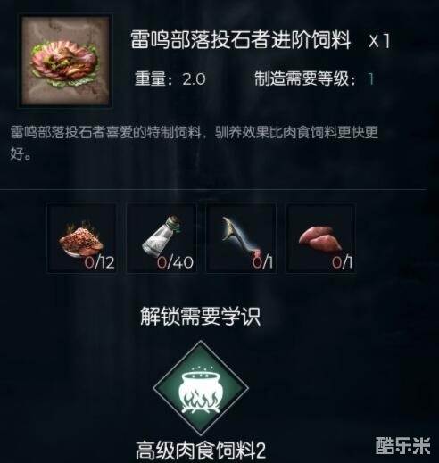 雷鸣部落投石者:中级肉饲料:540 盐:1800 月尾兽尾巴:45 红薯:45