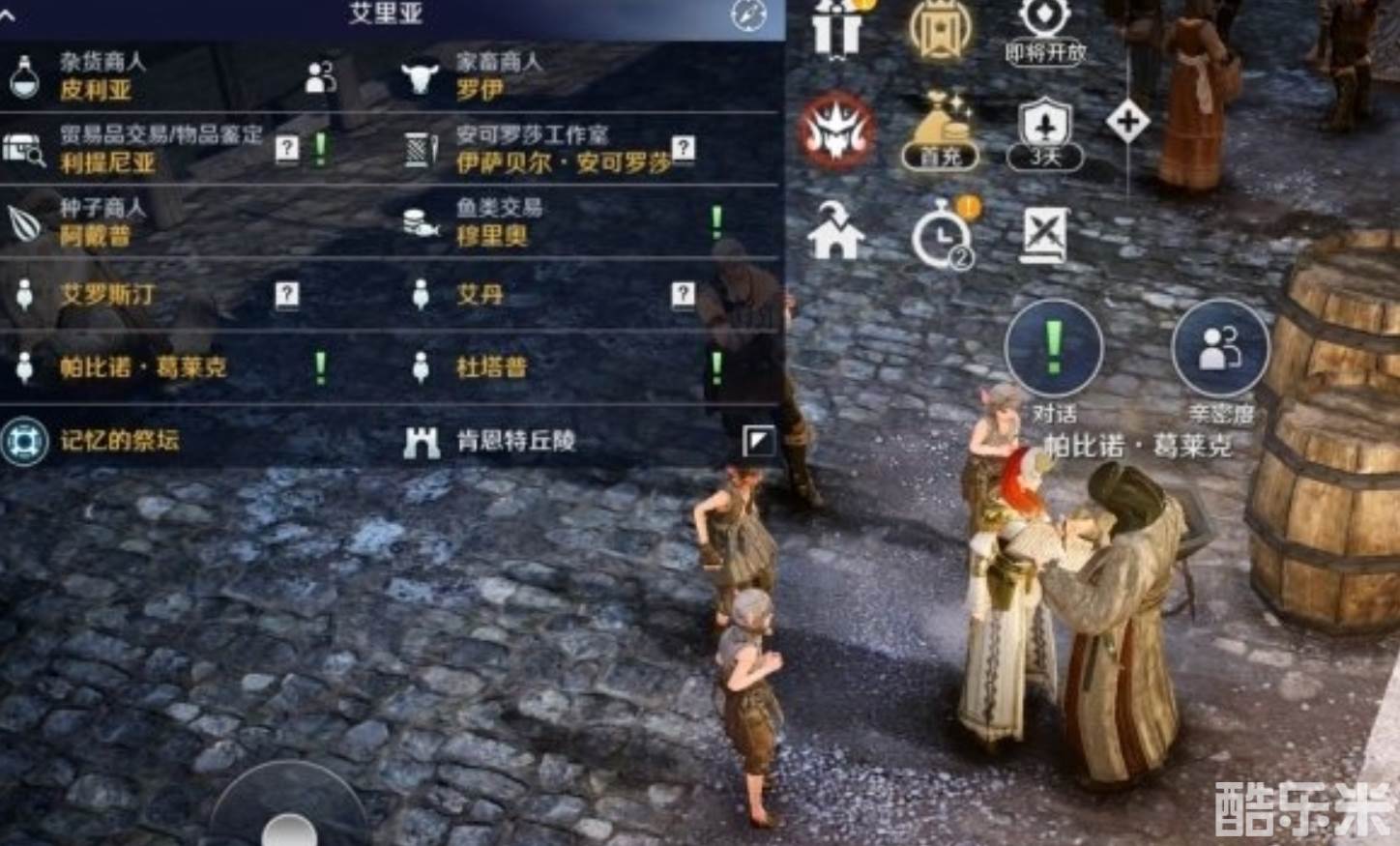 前往艾丽亚与NPC帕比诺·葛莱克对话