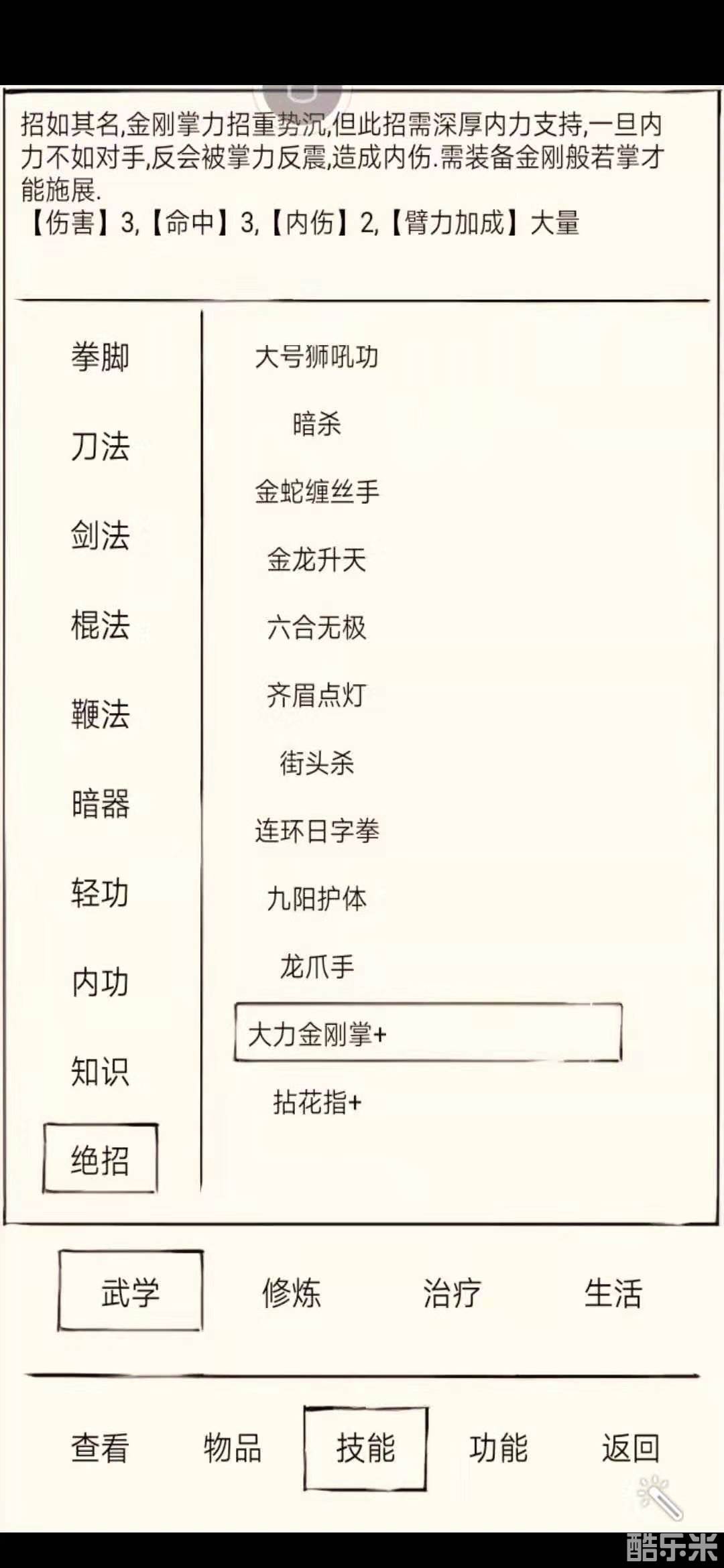1、首先玩家需要以达摩拳为基础,也就是说达摩拳已达到400级才能修炼