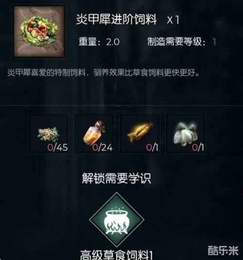 《黑暗与光明手游》60级炎甲犀进阶饲料一览