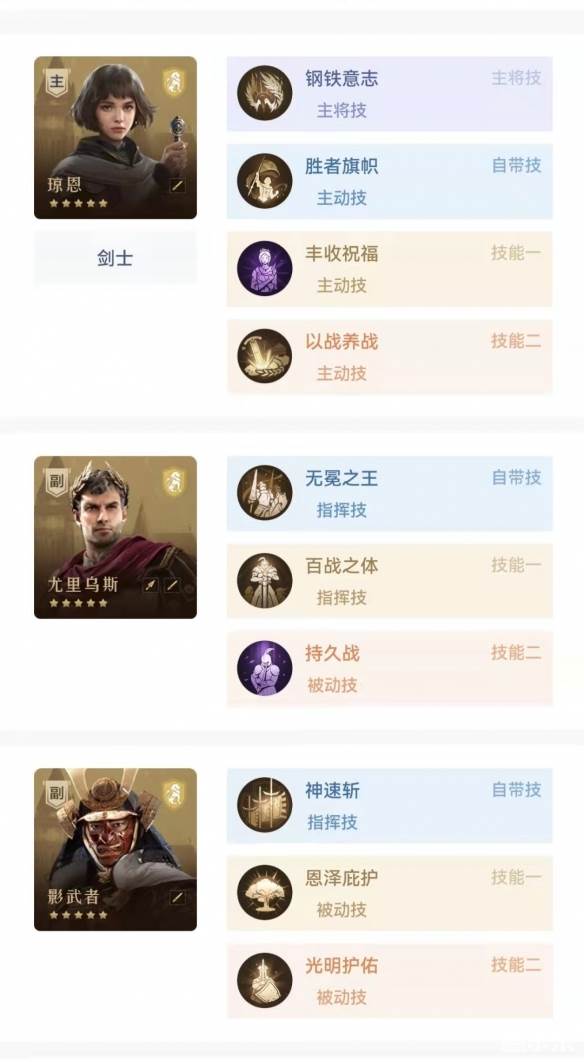 这么多套路,哪套才能走进你的心呢?利用小程序里的配将功能大家可以更直观地了解配将细节,比单纯“尤里乌斯、影舞者,琼恩”这样的粗略推荐更便于萌新实践,同时也利于探索更多搭配可能.