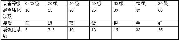 装备强化等级需求总经验为:经验基数*(强化等级*0.2+1.8)*强化等级/2