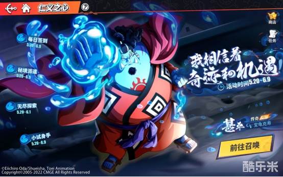 喜迎海侠甚平在《航海王热血航线》登场,5月20日开始,游戏内将陆续开启一系列伙伴主题活动。限定召唤活动启动,船长们将有更高概率获得【传奇伙伴·甚平】;特别活动【开放探索】、【迷航探险】陆续开放,船长将随进度获取海量奖励;还有【每日签到】、【兑换商店】等活动,让船长们获得大量黄金之果、召唤券等好礼哦~