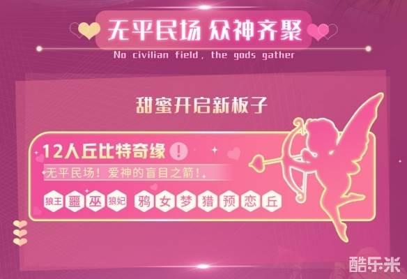 5月20日—5月31日,娱乐场活动板子“丘比特奇缘”限时上线,其中12人场板子配置为预言家、女巫、猎人、白痴、摄梦人、乌鸦、暗恋者以及噩梦之影、狼王、狼巫、蚀时狼妃和丘比特。
