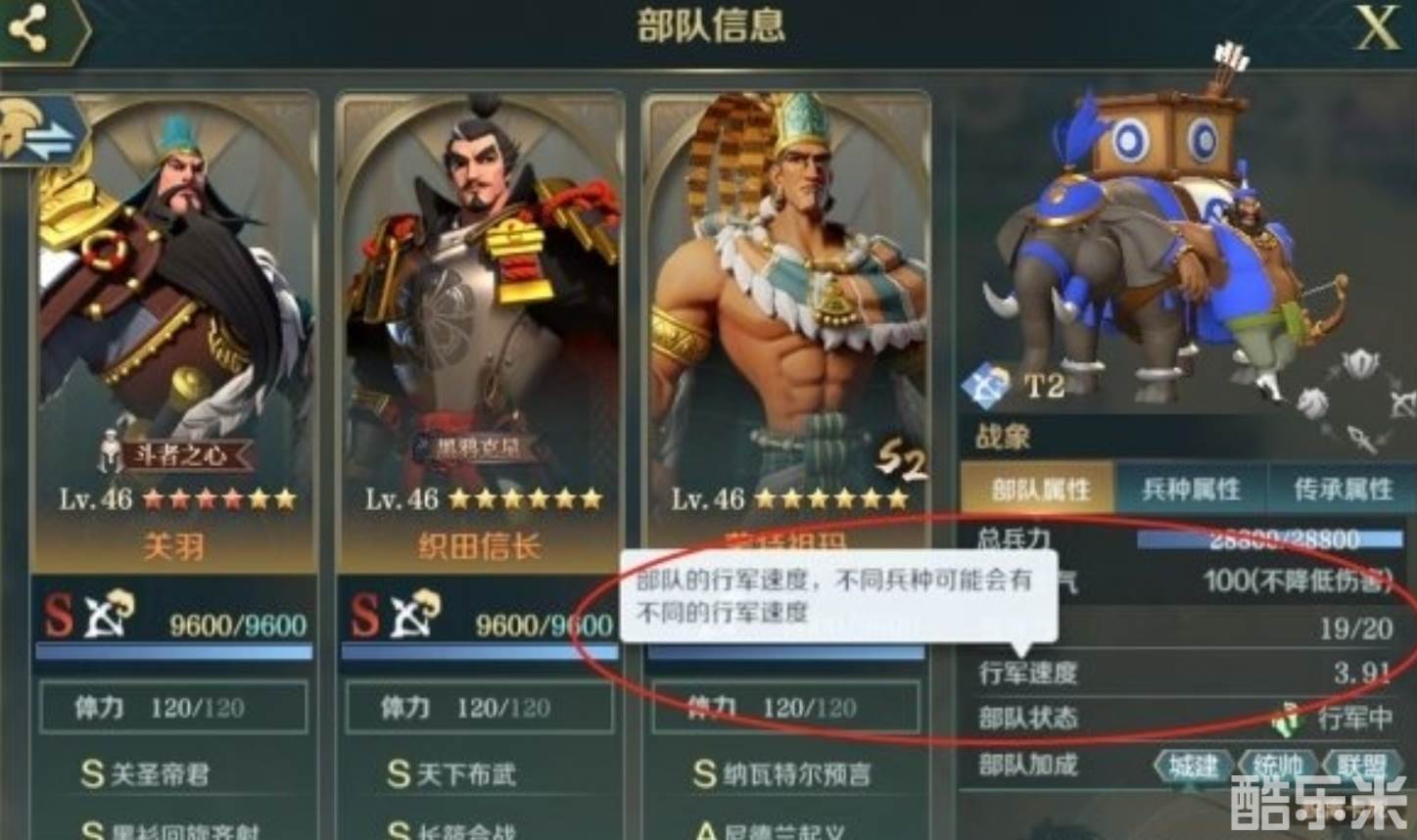 战象的兵装属性决定了它在联盟战争中的作用,特别是在铺路和据点占领夺回中意义重大,攻击敌方据点/堡垒中的部队伤害增加30%的加成,能够明显加快战争进程。但它有两个负面buff,一个是敌方死兵率降低15%,另一个是在非集结单独行动时部队移动速度降低15%,存在被敌方野外拦截享受不到攻击buff加成的风险,但在大规模联盟战斗中,仍然是广大玩家群体利大于弊的优选。