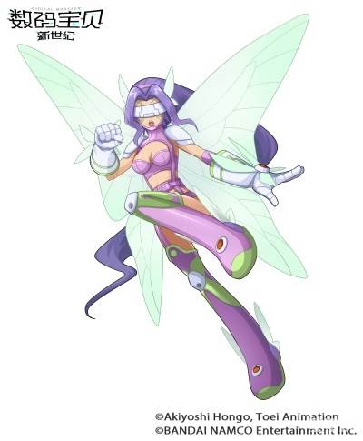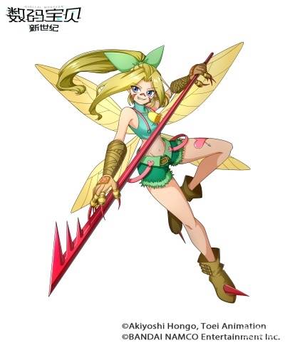 1、仙女兽:风能力数码宝贝,擅长自由操纵空气向敌人展示海市蜃楼以及创造真空状态以产生“镰鼬”的攻击,奥义技是冲向敌人一番连踢后,施展转身踢的“蔷薇暴风”;
