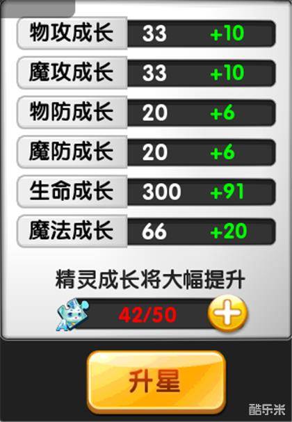 注:升星对精灵的属性提升最大的。