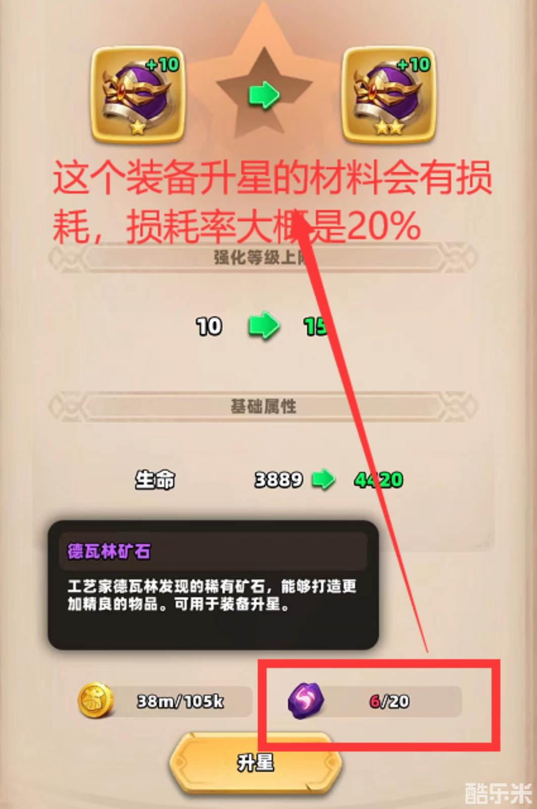 紫装升星要5个石头,然后将这个1星紫装喂给别的装备,会吐出来4个石头(德瓦林矿石),20%的损耗率。