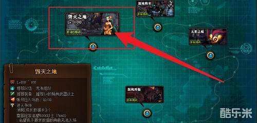 2、进入活动地图后往右边走,进入地下城选图界面就可以看到毁灭之地了。