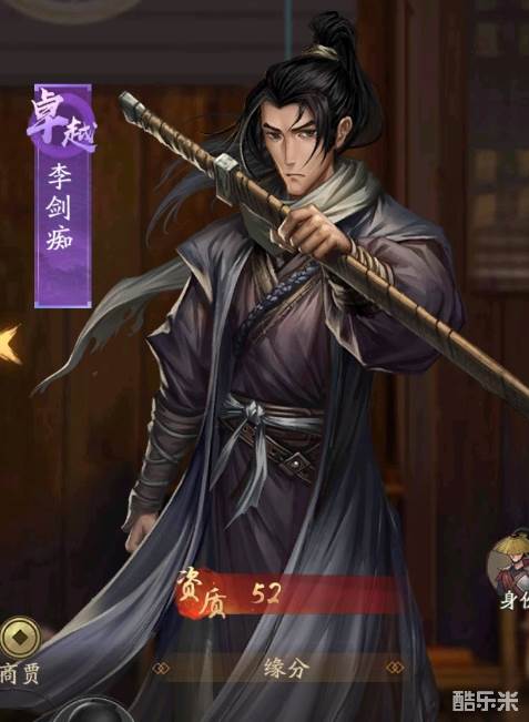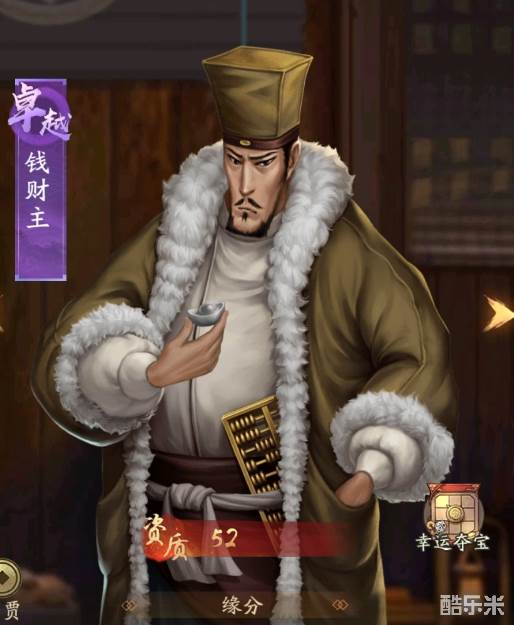 最高资质52,幸运夺宝获得,缘分人物刺客,红娘子,天赋一本万利,技能大师资质,经商之道,门客委任。